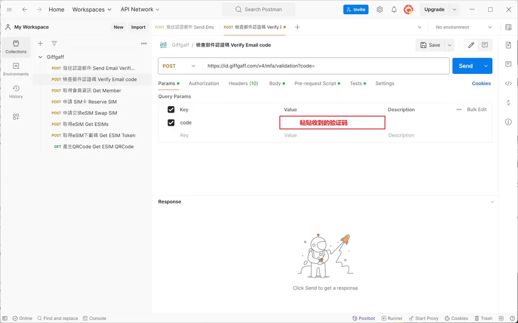 第一个步骤是 發送認證郵件 / Send Email Verification,切换到标签页点 Send,这个时候你的邮箱会收到另一个新的验证码,把这个验证码复制下来